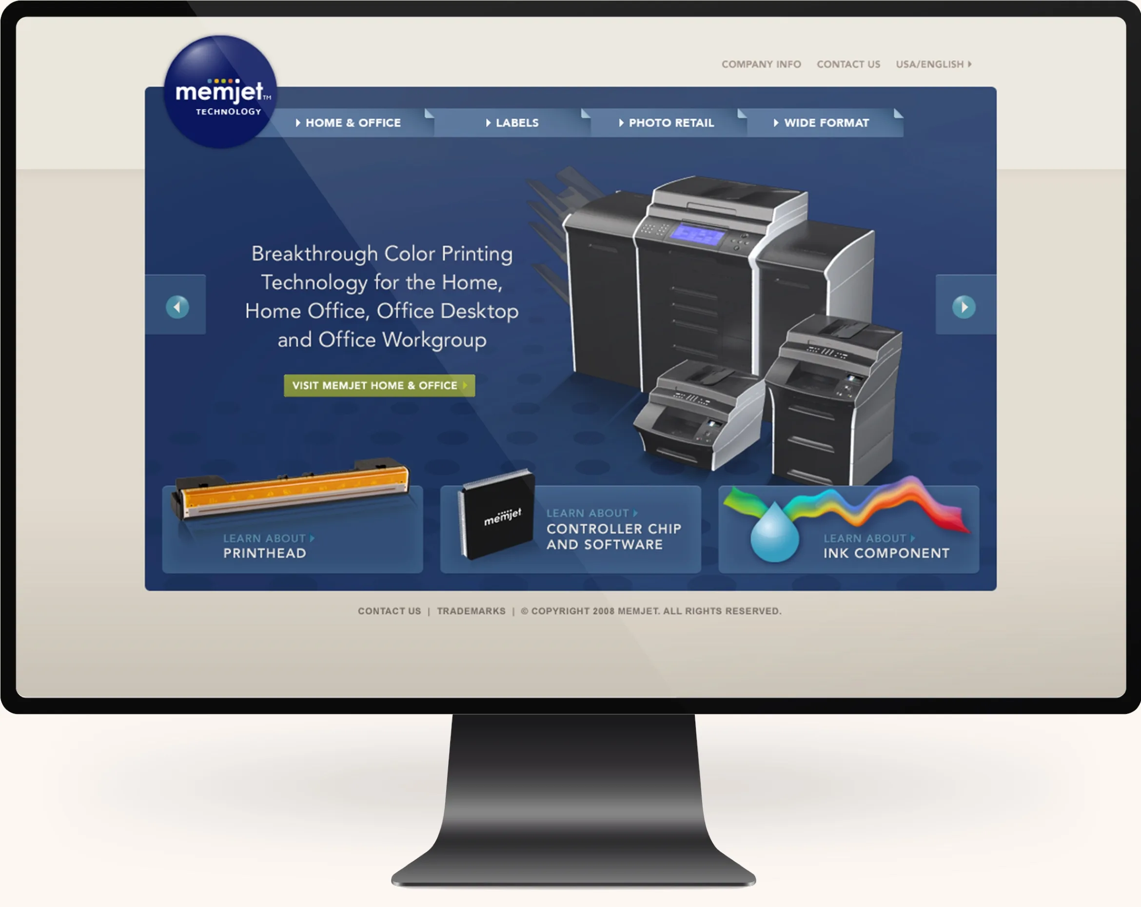We also created Memjet.com as the hub for the Memjet family of websites. Memjet Home and Office, Memjet Labels, Memjet Photo Retail and Memjet Wide Format share the Memjet technology, but are in fact separate companies. So we customized each company's site to fit their needs.