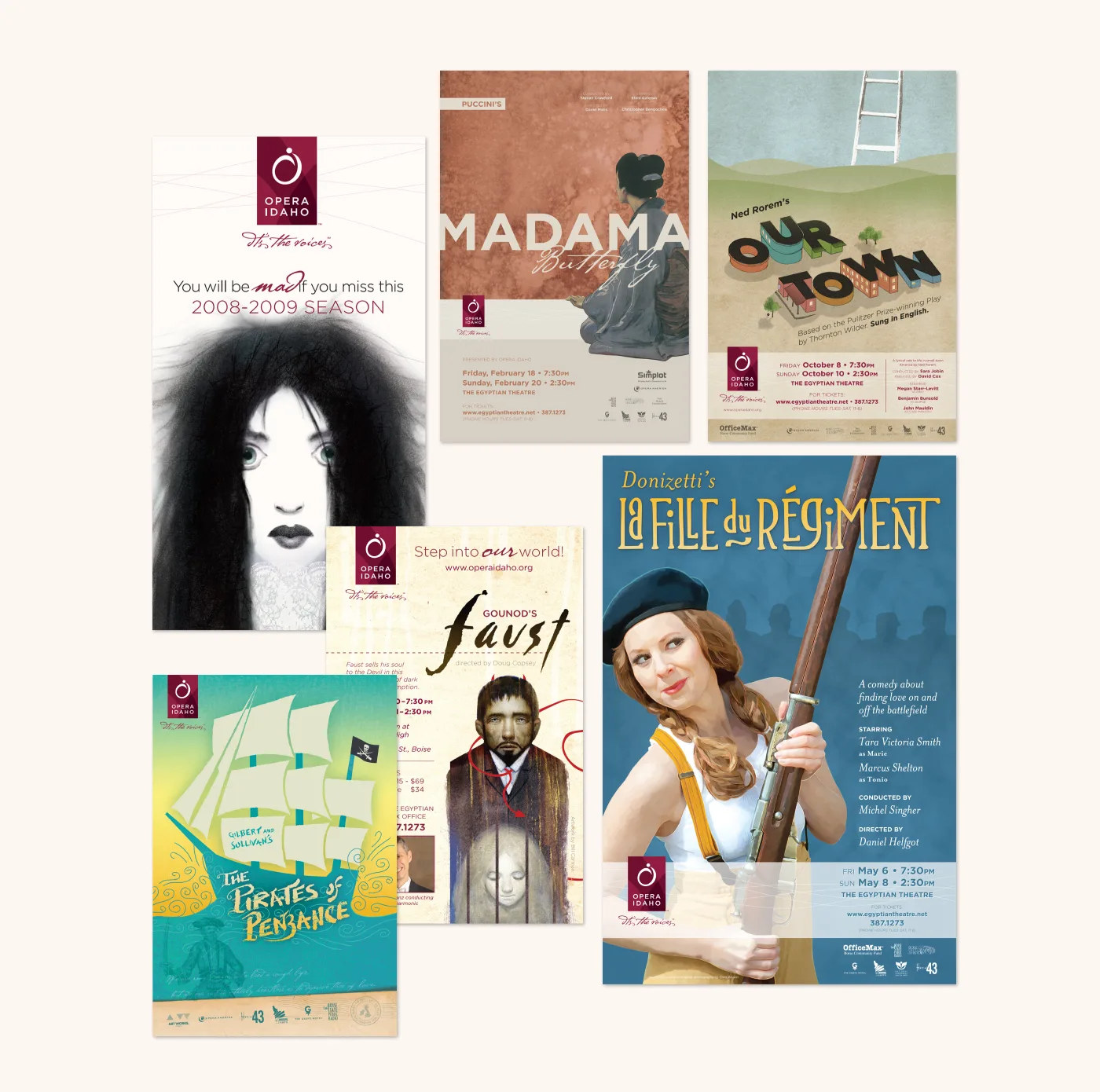 The affiliation of Opera Idaho with Creative Soapbox began late in the 2006-2007 opera season when we donated some time for a program layout. This soon blossomed into a working relationship that over the next few years resulted in a complete rebrand and powerful brand position.